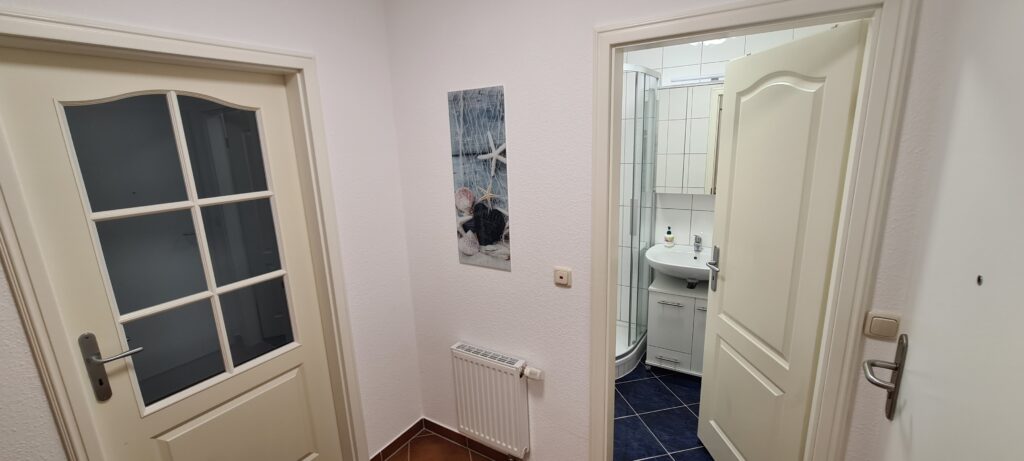 Das Badezimmer mit Waschbecken, Dusche, WC garantiert einen bestmöglichen Start in den neuen Tag. Für eventuelle kleinere „Malheure“ steht Ihnen eine Waschmaschine zur Verfügung. Im Spiegelunterschrank finden Sie u.a. ein Fön und ein Kosmetikspiegel.